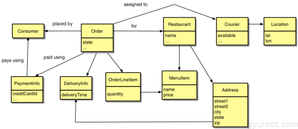 - 애그리거트: 도메인 이벤트와 커맨드가 처리하는 데이터, 상태가 변경되는 데이터