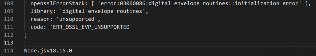 runtime에서 노드 버전이 18.15.0 에서 동작