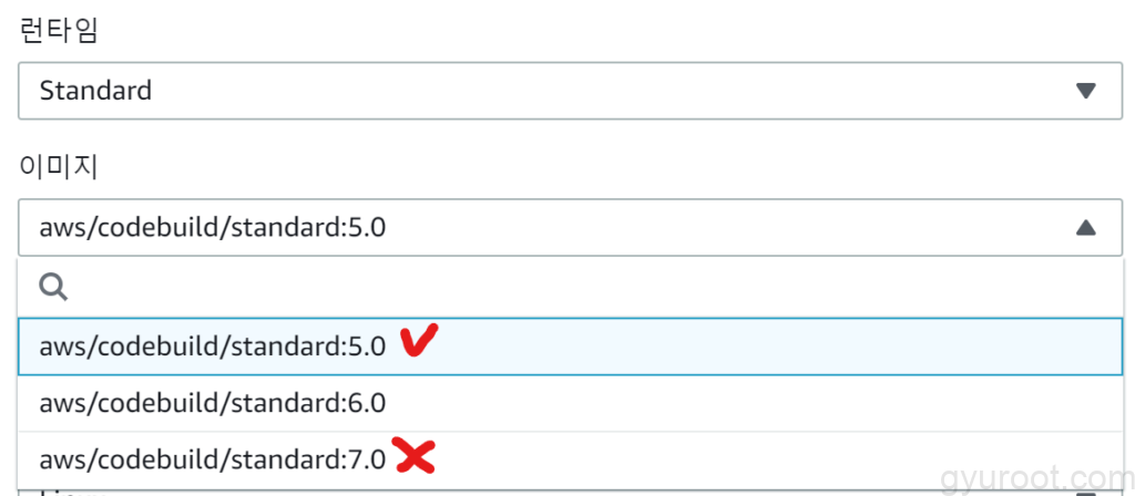 아래 처럼 이미지 별로 노드 버전이 다르므로 5.0 에서 동작을 해야함
