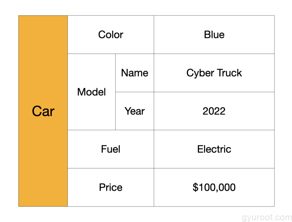 로 작성된 것은 list의 형태로 작성되어야 합니다. - 같은 배경색을 가지는 값들은 dictionary의 형태로 작성되어야 하며, array/list의 한 요소여야 합니다.