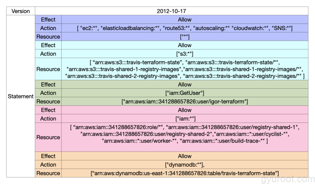 Resource: ["arn:aws:s3:::travis-terraform-state","arn:aws:s3:::travis-terraform-state/*","arn:aws:s3:::travis-shared-1-registry-images","arn:aws:s3:::travis-shared-1-registry-images/*","arn:aws:s3:::travis-shared-2-registry-images","arn:aws:s3:::travis-shared-2-registry-images/*"]