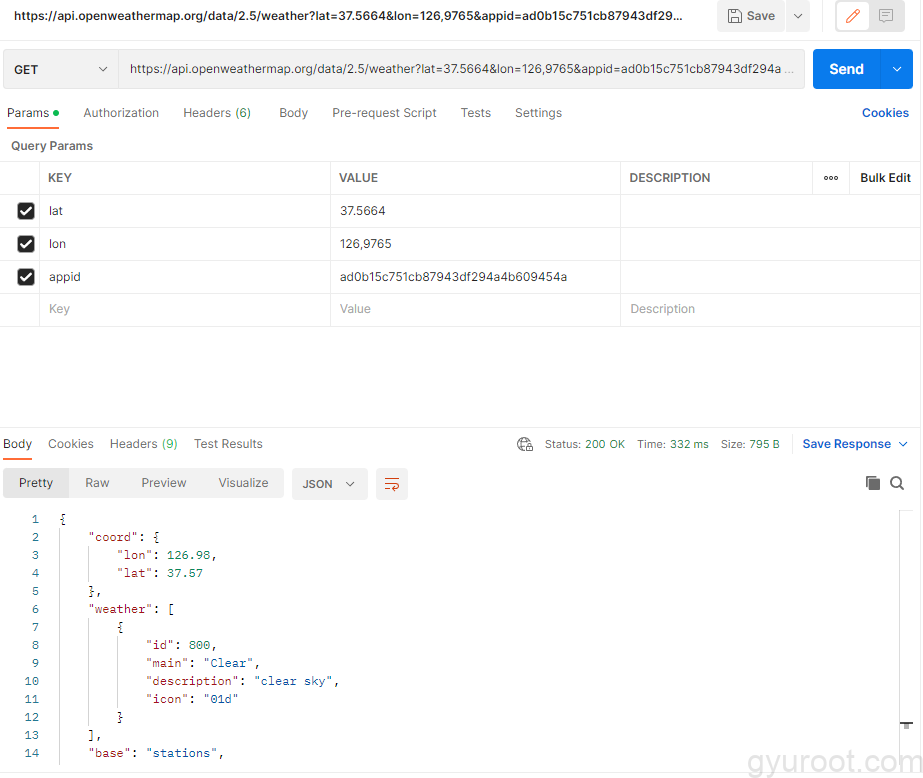 – Open Weather Map API를 참고하여 날씨를 요청(GET)하고, 응답을 확인
